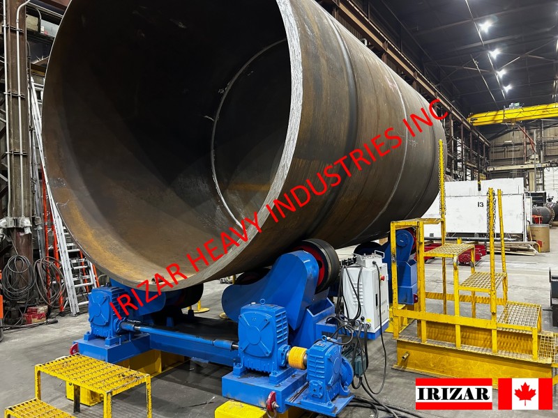 Irizar Heavy Industries Inc. is a Canadian company based in Edmonton, Canada. We take pride in manufacturing the world's largest Self-Aligned Welding Rotators and owning the world's largest stock. Self-aligned welding Rotators are used for positioning cylindrical workpieces, allowing for better weight distribution due to their eight wheels. They self-adjust to the vessel diameter, providing zero downtime. The set comprises one power rotator with variable speed and one idler roller. Self-Adjusted Turning Rolls automate the welding process by applying SAW (Submerged Arc Welding) on longitudinal and circumferential seams with the help of a Welding Manipulator.